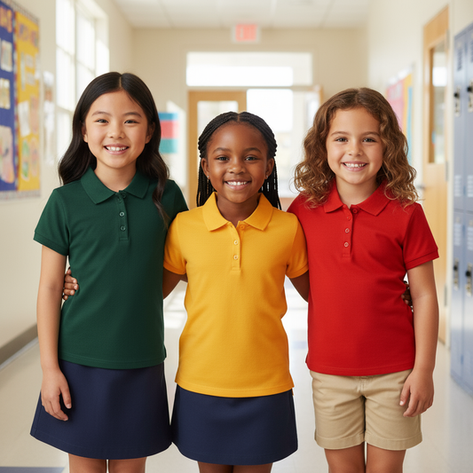 My Bow School Uniform Pique Girls Polo T-Shirt Short Sleeve 100% Cotton, Set of 3 - Green, Yellow ,Purple (US, Age 4 -14 Years))