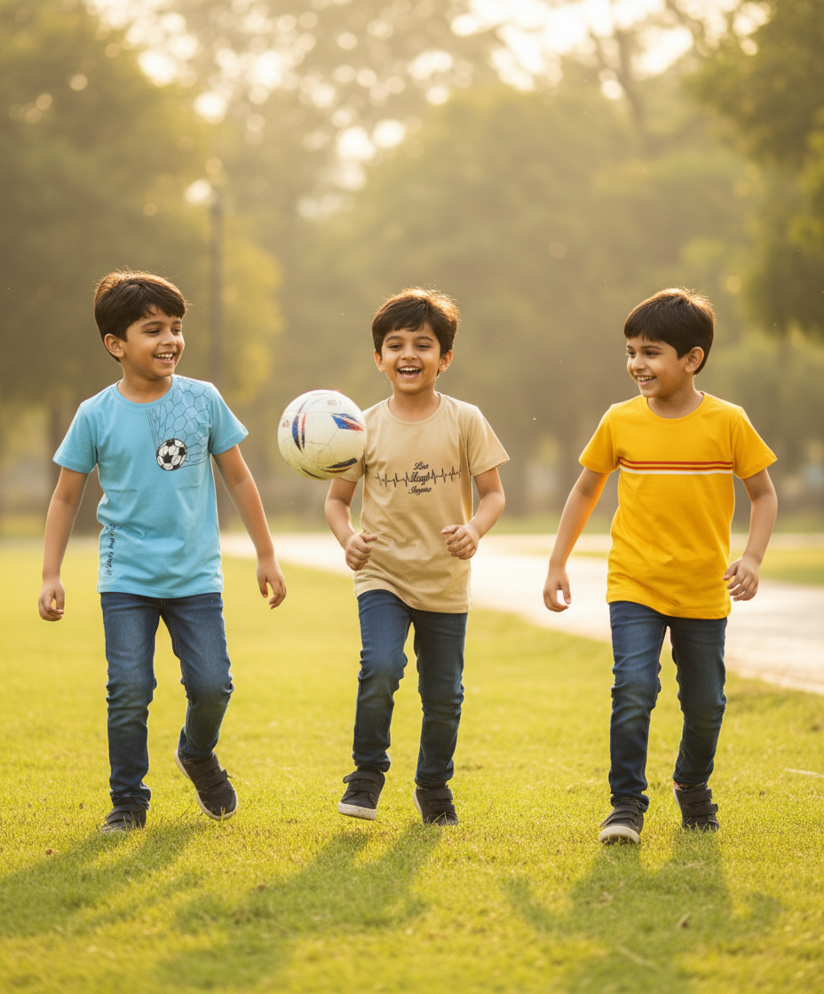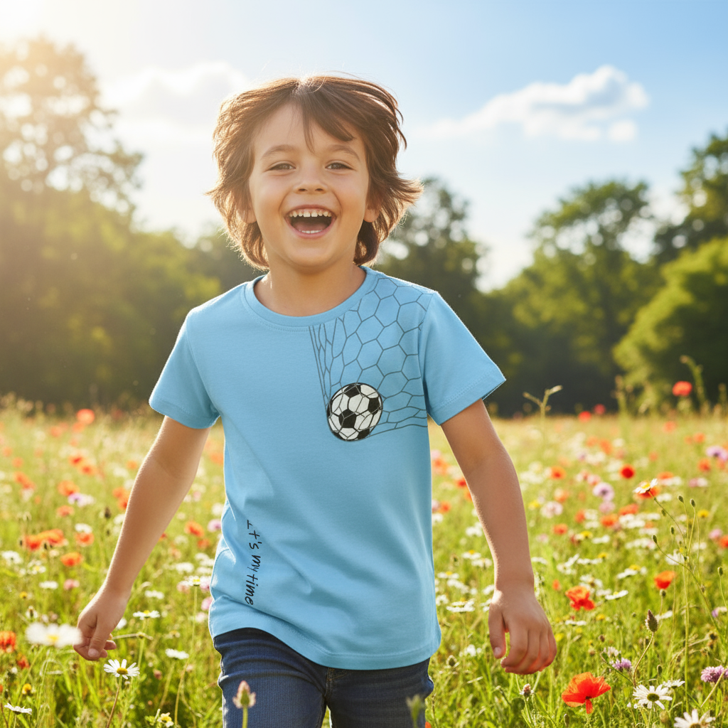 - Our eye-catching Graphic Designs: Soccer Ball, Cute Green Dino, Heart-Beats, red-white lines show-cased on the front of the T-Shirts that adds a playful touch, making these T-Shirts perfect for any young adventure.
